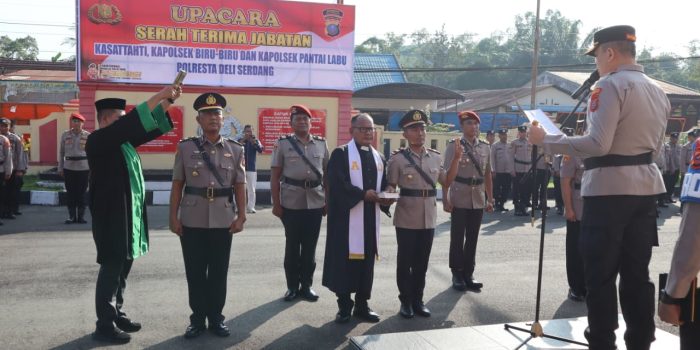 Kapolresta Deli Serdang Pimpin Sertijab Kasat Tahti, Kapolsek Biru-Biru dan Kaposek Pantai Labu