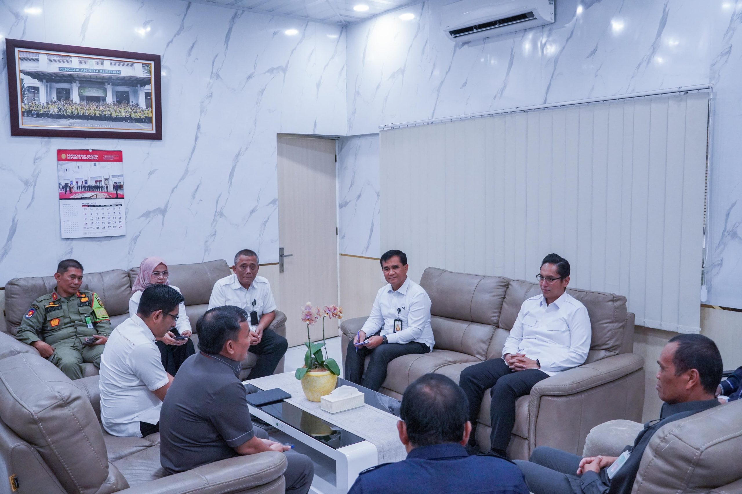 Medan (medanbicara.com) – Guna memperkuat sinergitas sekaligus dukungan dalam membangun Kota Medan, Wali Kota Medan Rico Tri Putra Bayu Waas bersilaturahmi dengan Ketua Pengadilan Negeri (PN) Medan Jon Sarman Saragih SH MHum di Kantor PN Medan Jalan Pengadilan, Rabu (5/3/2025).