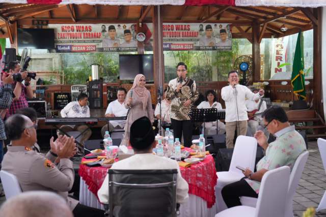 Saat menghadiri acara Open House Hari Raya Idulfitri 1446H yang diadakan di kediaman Wakil Wali Kota Medan H. Zakiyuddin Harahap, di jalan Gurilla, Kecamatan Medan Perjuangan, Selasa (1/4/2025), Rico Waas mendendangkan dua buah lagu diantaranya lagu Melayu berjudul “Lemak Manis” dan lagu berjudul “Pergi Pagi Pulang Pagi” yang dibawakan group band Armada.