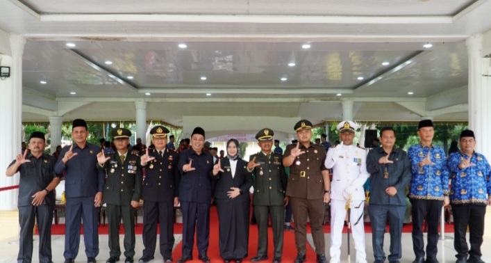 Upacara dihadiri oleh Wakil Ketua DPRD Langkat Ir. Antoni, unsur Forkopimda Kabupaten Langkat, Sekretaris Daerah Kabupaten Langkat, para Asisten dan Staf Ahli Setdakab Langkat, Kepala Perangkat Daerah Pemkab Langkat, Pengurus Dharma Wanita Persatuan, dan Tim Penggerak PKK Kabupaten Langkat. Hadir pula peserta upacara dari TNI, Polri, Satpol PP, ASN Pemkab Langkat, pelajar SLTP dan SLTA, serta perwakilan Organisasi Kepemudaan (OKP) di Kabupaten Langkat.