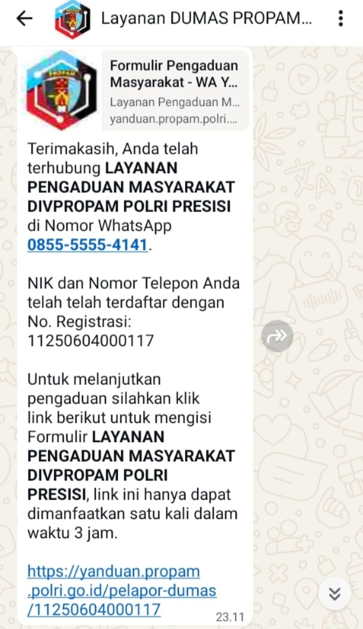 Informasi dihimpun pada Jumat (13/6/2025), Dumas yang disampaikan pelapor dengan terlapor ES warga Lubuk Tampu Desa Sidoarjo II Ramunia Kecamatan Beringin Kabupaten Deli Serdang, terkait dugaan pencemaran nama baik.