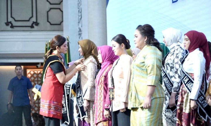 Dalam sambutannya, Ny. Kahiyang Ayu menyampaikan ucapan selamat kepada seluruh penerima amanah baru, baik di tingkat provinsi maupun kabupaten/kota. Ia menekankan pentingnya sinergi dan kolaborasi lintas sektor untuk mengoptimalkan peran Bunda PAUD, Bunda Literasi, dan Dekranasda.