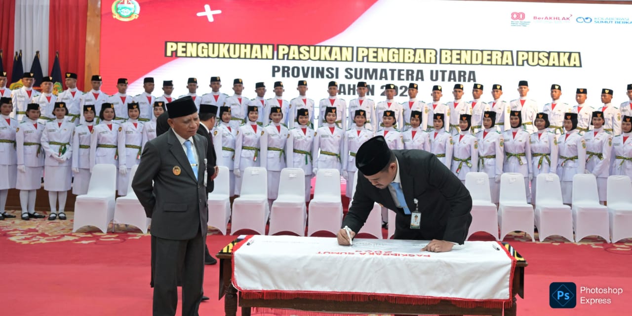 MEDAN (medanbicara.com) – Gubernur Sumatera Utara Bobby Nasution secara resmi mengukuhkan 173 anggota Pasukan Pengibar Bendera Pusaka (Paskibraka) Sumut 2025. Mereka akan bertugas mengibarkan Sang Saka Merah Putih pada Upacara HUT Kemerdekaan RI ke-80, 17 Agustus 2025, di Lapangan Astaka, Medan.