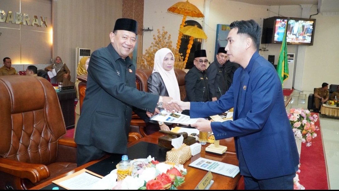 Langkat (medanbicara.com) – Bupati Langkat H. Syah Afandin, SH menghadiri Rapat Paripurna DPRD Kabupaten Langkat dalam rangka pengesahan Rancangan Peraturan Daerah (Ranperda) Perubahan Anggaran Pendapatan dan Belanja Daerah (P-APBD) Tahun Anggaran 2025. Rapat berlangsung di Gedung DPRD Kabupaten Langkat, Selasa (26/8/2025).