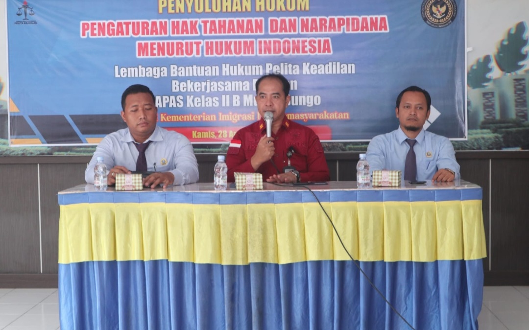 Muara Bungo (medanbicara.com) – Lapas Muara Bungo Kementerian Imigrasi dan Pemasyarakatan Direktorat Jenderal Pemasyarakatan Kantor Wilayah Jambi Laksanakan Penyuluhan Hukum bagi Tahanan bekerja sama dengan LBH. Pelita Keadilan Muara Bungo, Kamis (28/8/2025).