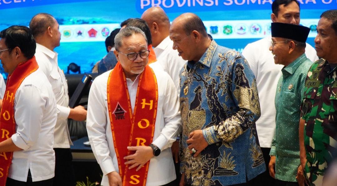 Rapat ini dipimpin langsung oleh Menteri Koordinator Bidang Pangan Dr. Zulkifli Hasan, S.E., M.M selaku Ketua Satgas Nasional Percepatan Pembangunan Koperasi Merah Putih. Turut hadir Kepala Badan Pangan Nasional H. Areif Prasetyo Adi, S.T., M.T, Wakil Menteri Dalam Negeri Bima Arya, serta Wakil Gubernur Sumatera Utara Surya, B.Sc.