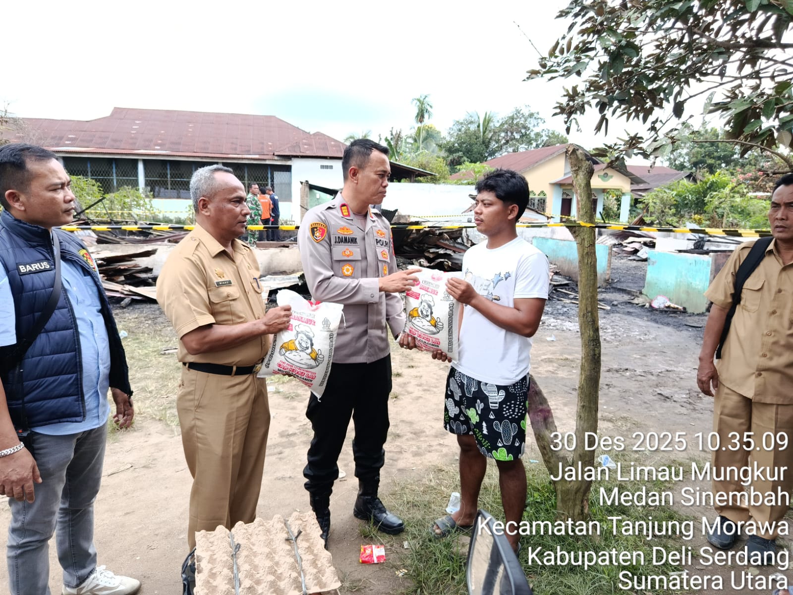 Deli Serdang (medanbicara.com) – Polsek Tanjung Morawa peduli kepada korban kebakaran dengan melaksanakan Bhakti Sosial membersihkan puing – puing sisa kebakaran dan memberikan bantuan Sembako kepada warga korban kebakaran di Dusun VI Gang Seni Desa Bangun Rejo Kecamatan Tanjung Morawa Kabupaten Deli Serdang, terbakar, Selasa (30/12/2025).