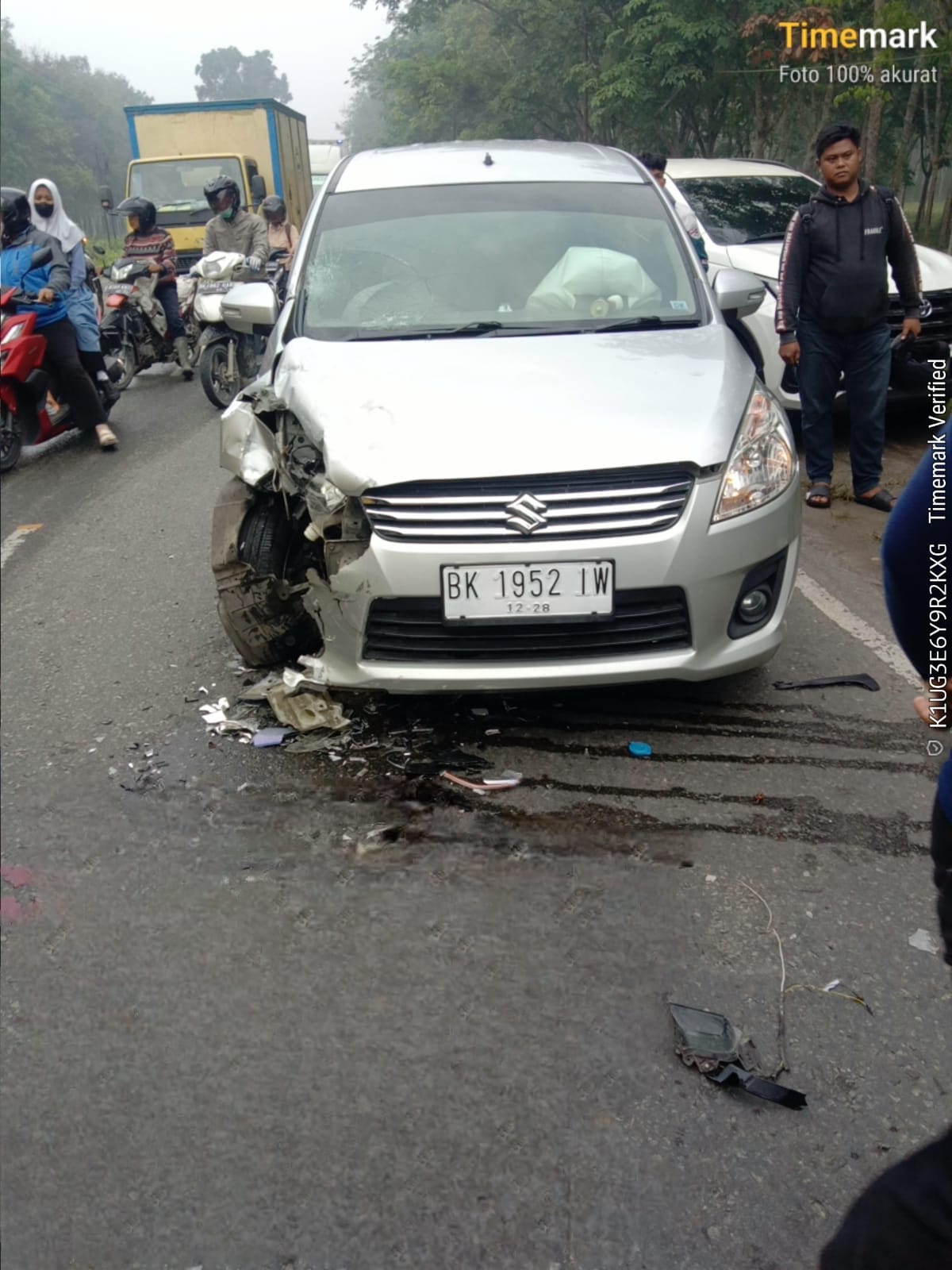 Insiden tersebut melibatkan satu unit mobil minibus jenis Suzuki Ertiga BK 1952 IW dengan sepeda motor Yamaha NMAX tanpa pelat nomor.