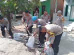 Polsek Tanjung Morawa Gotong Royong Pembuatan Tanggul Sungai dan Berikan Sembako